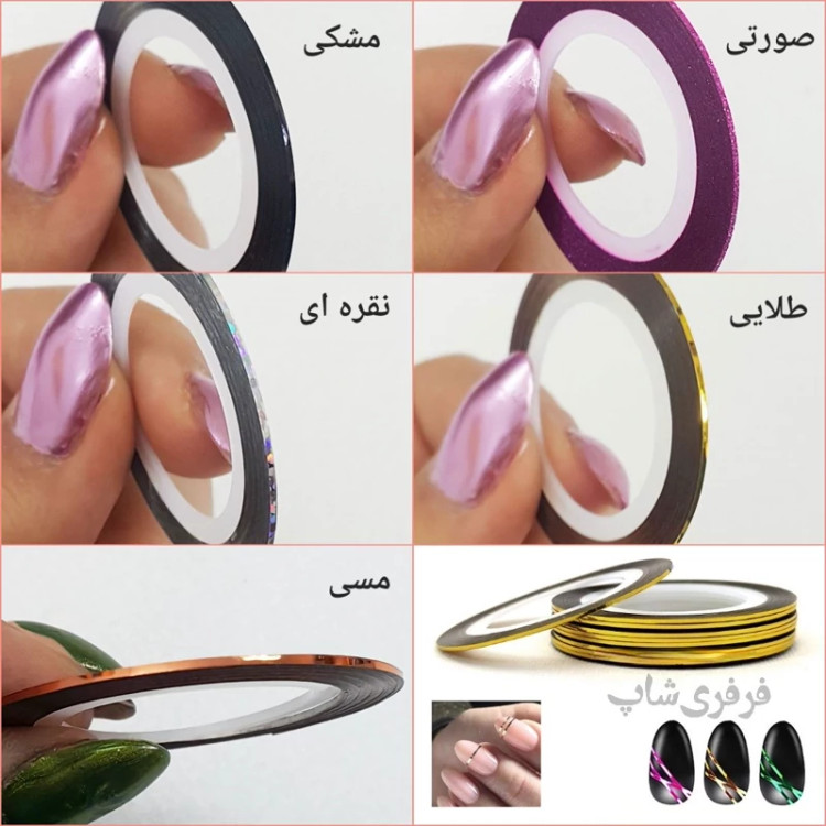امروزه استفاده از اکسسوری های ناخن، امکان طراحی ناخن ها حتی در منزل را فراهم کرده است. با استفاده از نوار طراحی ناخن باریک نقره ای می توانید به راحتی و در چند ثانیه، اشکال هندسی و طرح های مختلفی را بر روی ناخن های خود ایجاد کنید.