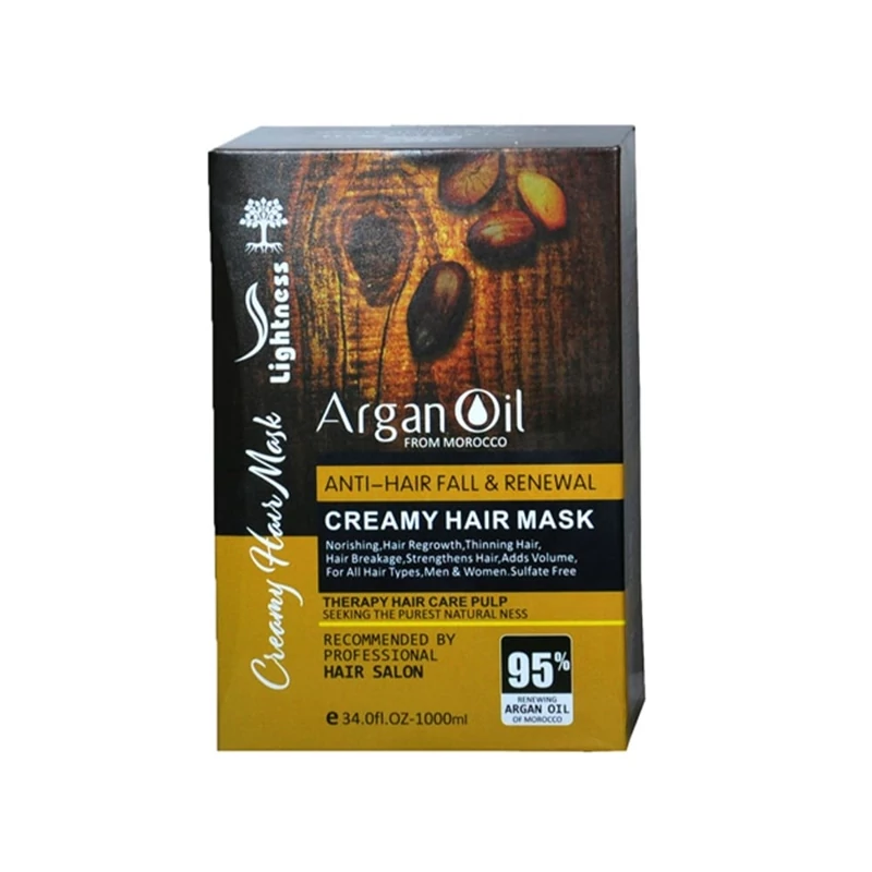 ماسک مو آرگان Lightness، حاوی روغن آرگان، مناسب برای رطوبترسانی، درخشانکنندگی و شادابی ساقه مو. تقویت ساقه مو و از بین بردن آسیبهای ناشی از حرارت (اتو مو و سشوار) و مواد شیمیایی (رنگ مو و دکلره) میباشد. تماس ماسک مو لایتنس با پوست سر مانعی نداشته، و بنابراین افراد دارای موهای کوتاه نیز میتوانند از این محصول استفاده کنند.این ماسک به دلیل دارا بودن روغن آرگان و ویتامین E ، باعث درخشندگی و شفافیت موها شده و آنها را از حالت کدر بودن خارج میکند. ماسک مو لایتنس از ریزش موها جلوگیری کرده و باعث استحکام بیشتر تارهای مو میگردد. با استفاده از این محصول موهای شما در برابر عوامل آسیب زنندهای همچون حرارت و رنگ های شیمیایی، محافظت و آسیب کمتری خواهد دید.