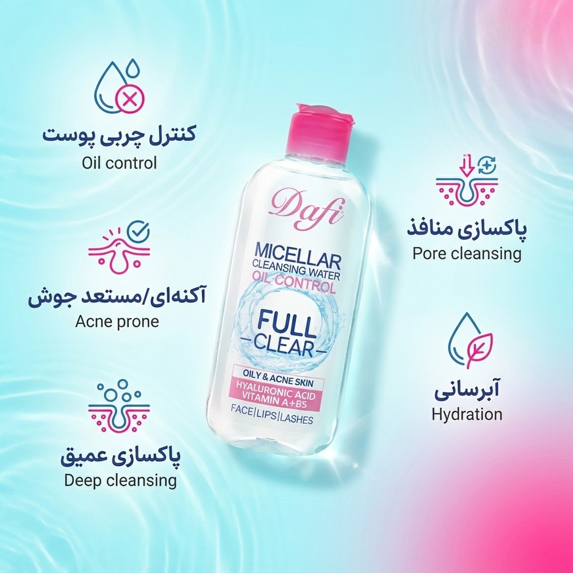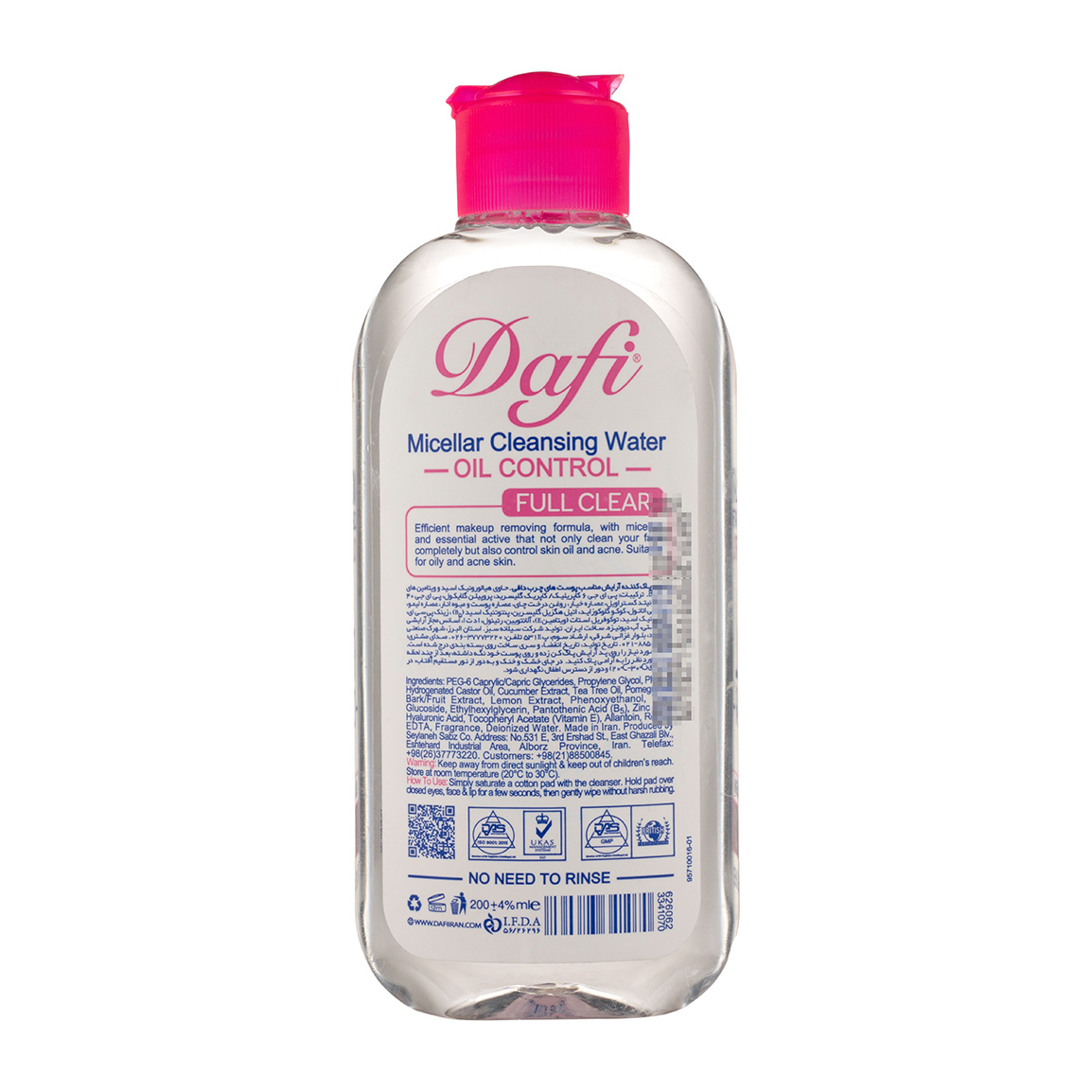 میسلار واتر صورت دافی مدل Oil control مناسب پوست چرب و آکنه دار حجم 200 میلی لیتر