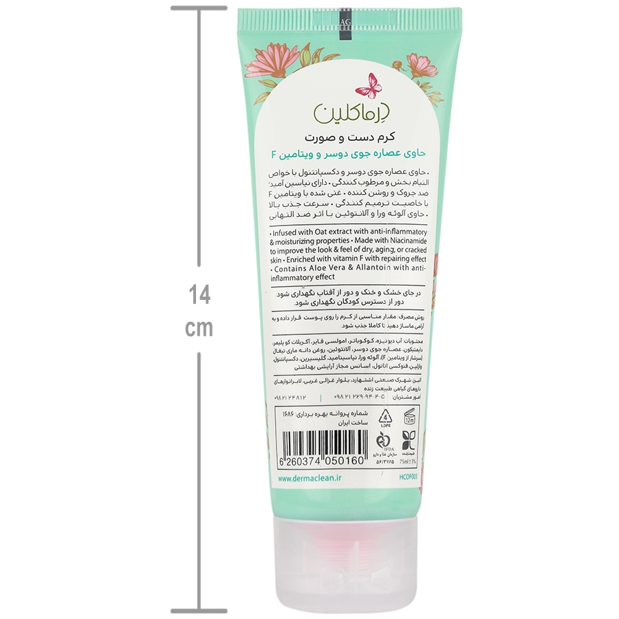 کرم دست و صورت حاوی عصاره جوی دوسر و ویتامین F حجم 75میل درماکلین